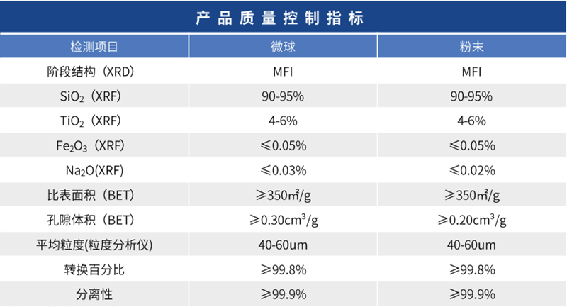 鈦硅分子篩是Ti原子部分取代硅鋁分子篩中的鋁原子而成,屬于ZSM-5系列沸石分子篩,具有MFI拓撲結構,由硅氧四面體和鈦氧四面體等初級結構單元,通過氧橋連接,構成了五元環的次級結構單元,并進一步形成三維微孔骨架,MFI分子篩具有二維的孔道結構,平行于a軸方向的十元環呈S型,孔徑為0.51nm×0.55nm,平行于b軸方向的十元環呈直線型,孔徑為0.54nm×0.56nm。本公司生產的鈦硅分子篩,平均粒徑50-60m,最小接近10m,最大小于105m,粒徑分布均勻。鈦硅分子篩可以作為催化氧化催化劑,廣泛應用于氧化反應、環氧化反應和胺肟化反應。例如,用于生產環氧丙烷的催化劑,用于生產環己酮肟的催化劑。