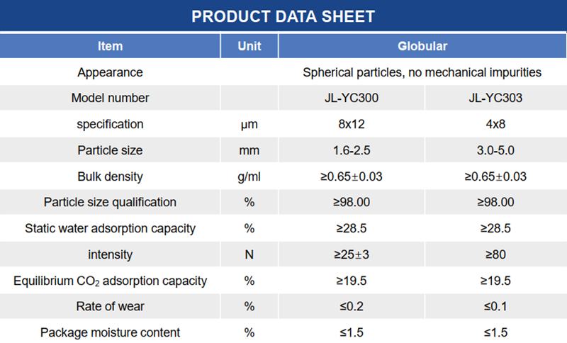 YC300/303 molecular sieve, mainly used in cryogenic air separation oxygen production equipment, the product has the advantages of high strength, not easy to powder, fast adsorption rate, long service life and so on.