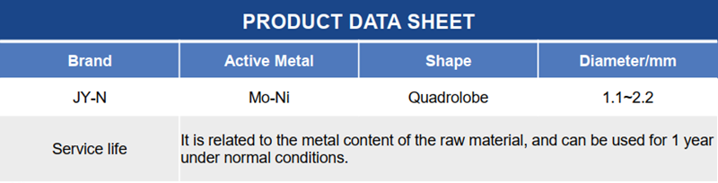 JY-N catalyst has the functions of aromatic saturation, carbon removal, desulfurization, high nitrogen removal and moderate hydrocracking (conversion).